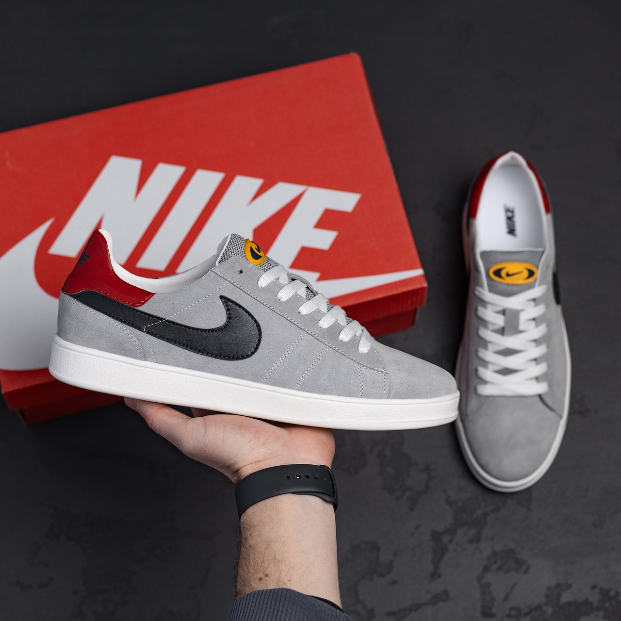 Яскраві чоловічі шкіряні кросівки виготовлені компанією-виробником в Україні і з вітчизняної натуральної шкіри. Спортивне взуття цієї моделі відмінно підійде на кожен день, під джинси або спортивки. Верх зроблений з натуральної замші сірого кольору. Також присутні білі шкіряні елементи по боках черевика. Білими також є шнурки. Окремо потрібно винести такі переваги моделі кросівок – Виріб зроблено з високоякісної шкіри від українського виробника. Підошва ТЕП. Вона не утруднить ваші рухи, а навпаки зробить їх легкими і комфортними. – універсальний чорний колір кросівок. Вибирайте саме чоловічі шкіряні кросівки Black. Ціни в нашому інтернет-магазині дуже демократичні і привабливі. Ми знайдемо саме ваш розмір.