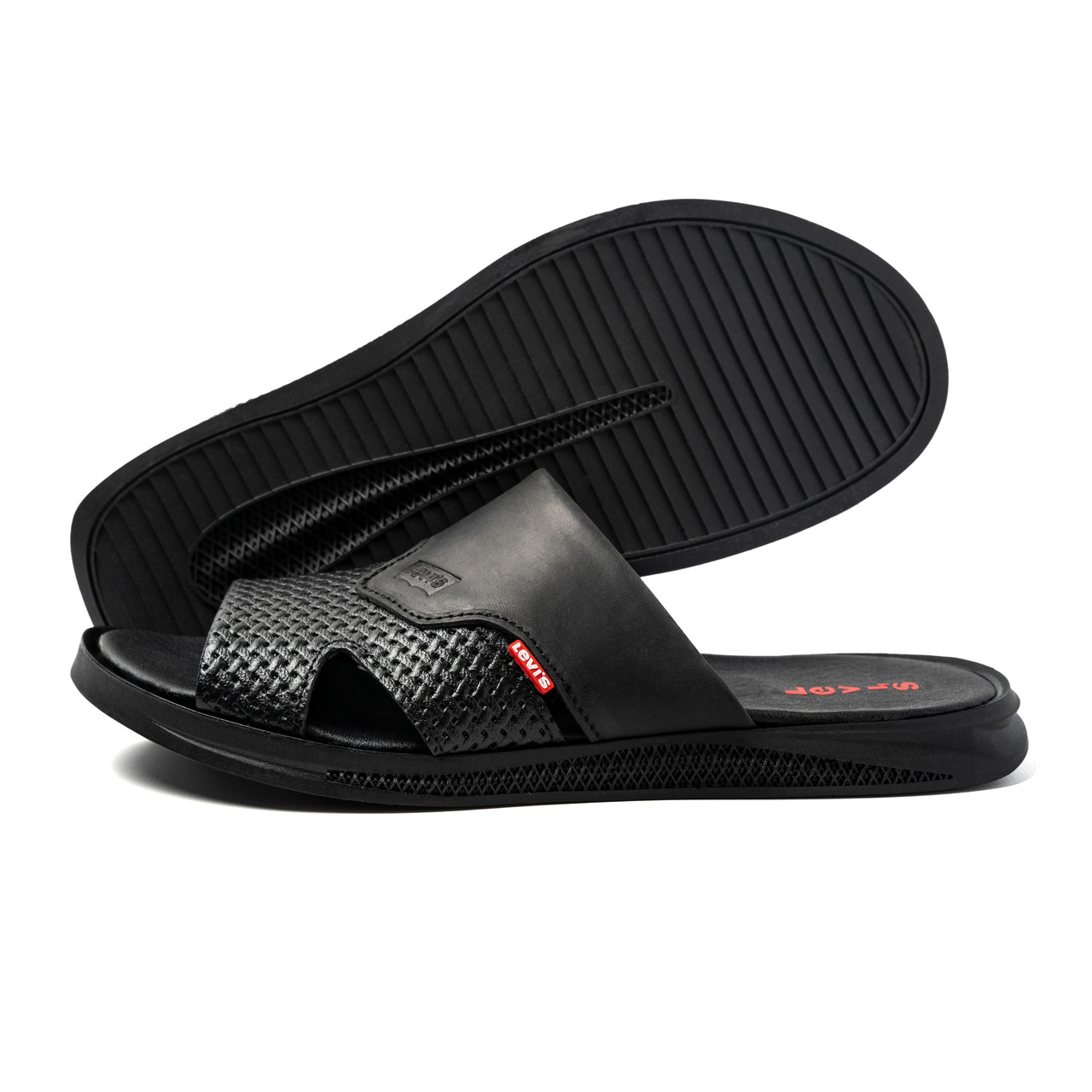 Обрана Вами модель Чоловічі шкіряні літні шльопанці-сланці Levis відрізняється простотою дизайну і якістю використовуваних матеріалів.