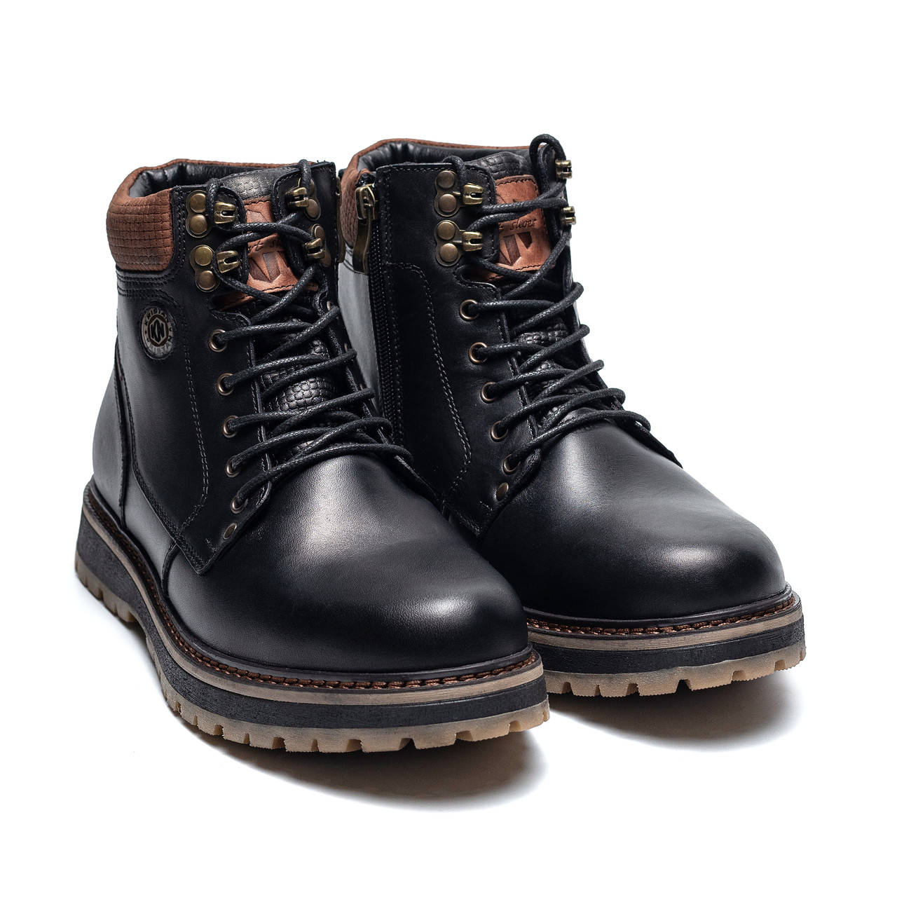 Новинка нашого інтернет-магазину Чоловічі зимові черевики Kristan black. Такий інтерес до них можна пояснити класичним дизайном, якістю черевиків і прийнятною ціною. Верх черевиків з натуральної шкіри. Вона дозволяє нозі дихати, захистити наші ноги від перепадів температури. Ви, мабуть, погодитесь, що черевики з натуральної шкіри виглядають більш презентабельніше, ніж з замінника. На п'ятірці обох черевиків миють додатковий шматочок шкіри, він по дизайну добре підходить і затепляє задню частину виробу.
