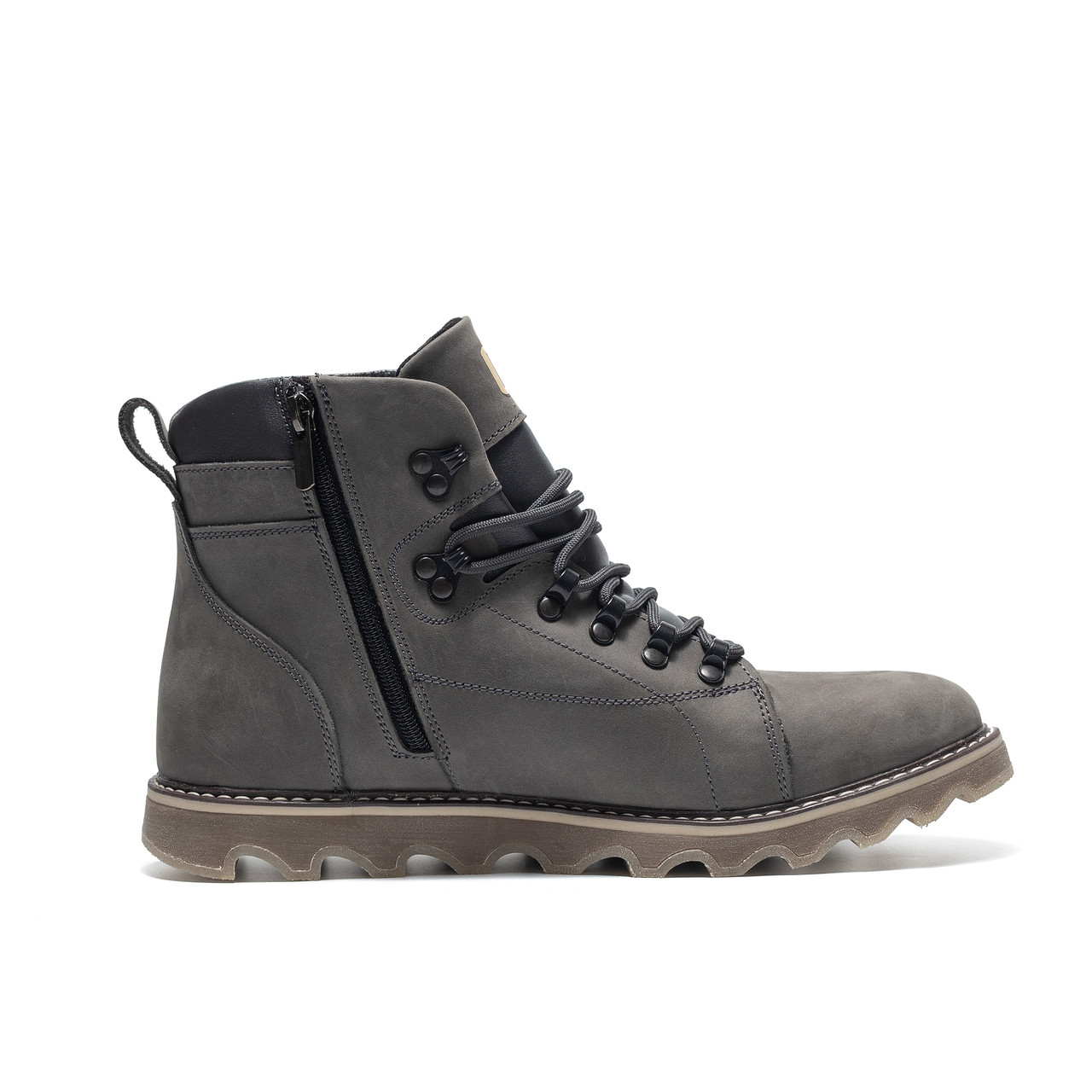 Чоловічі зимові шкіряні черевики CAT Expensive  відмінно підходять для щоденного використання. Верх черевиків виготовленний  з натуральної шкіри сірого кольору, підкладка набивна шерсть. Завдяки цим перевагам, Ваші ноги будуть в теплі і сухості в холодну морозну погоду. А їх міцна підошва дозволить знизити ковзання. Купуючи комфортні черевики CAT Expensive у нас, Ви отримуєте якісну сучасну взуття за вигідною ціною від Українського виробника.