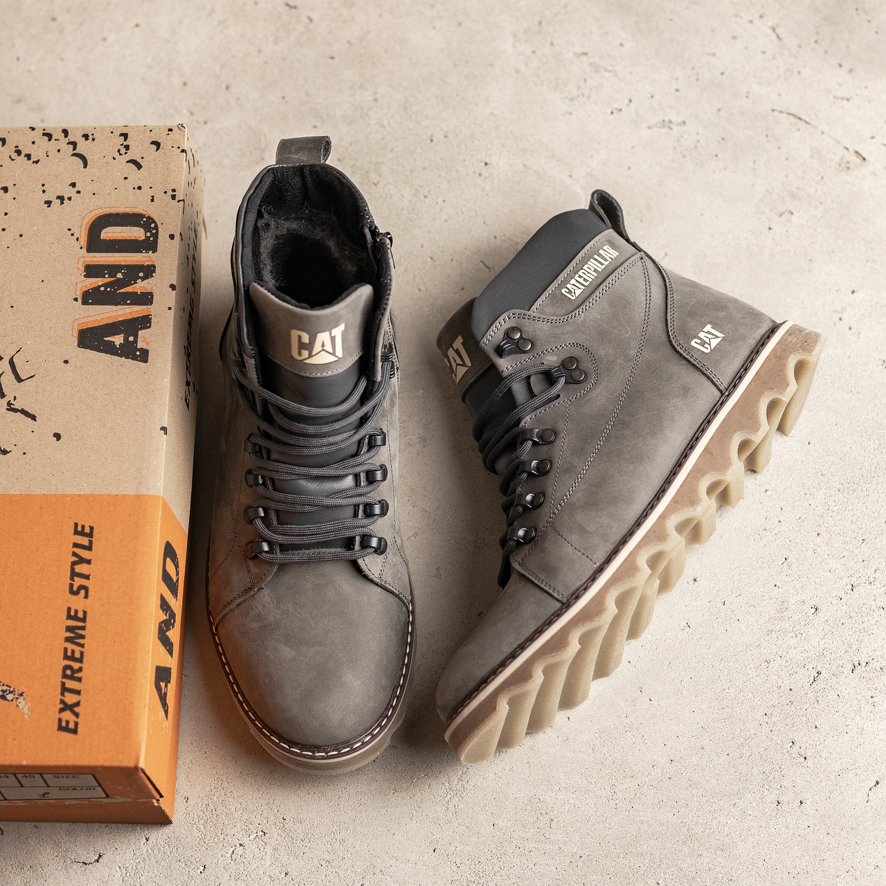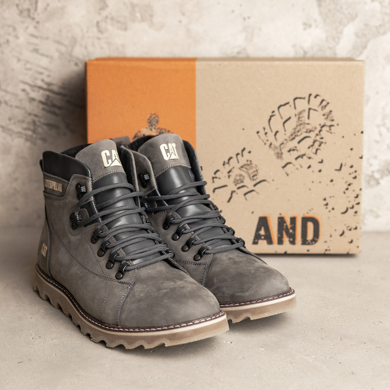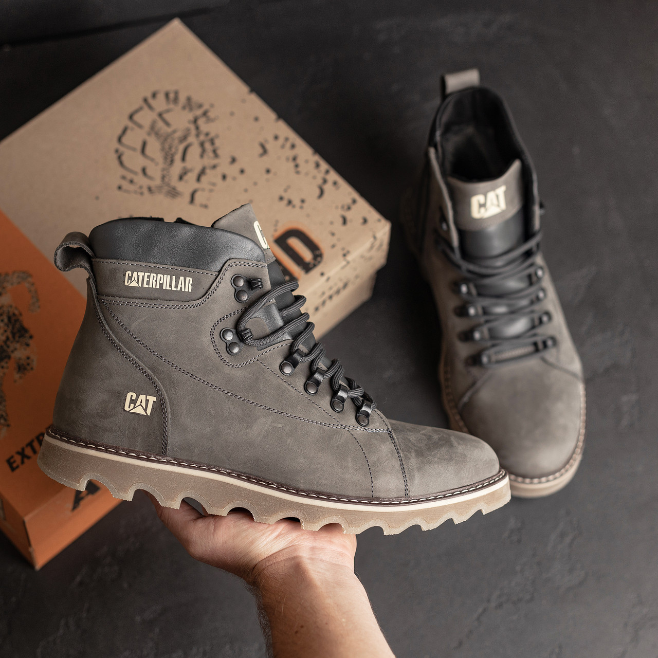 Чоловічі зимові шкіряні черевики CAT Expensive Grey (408 сір)