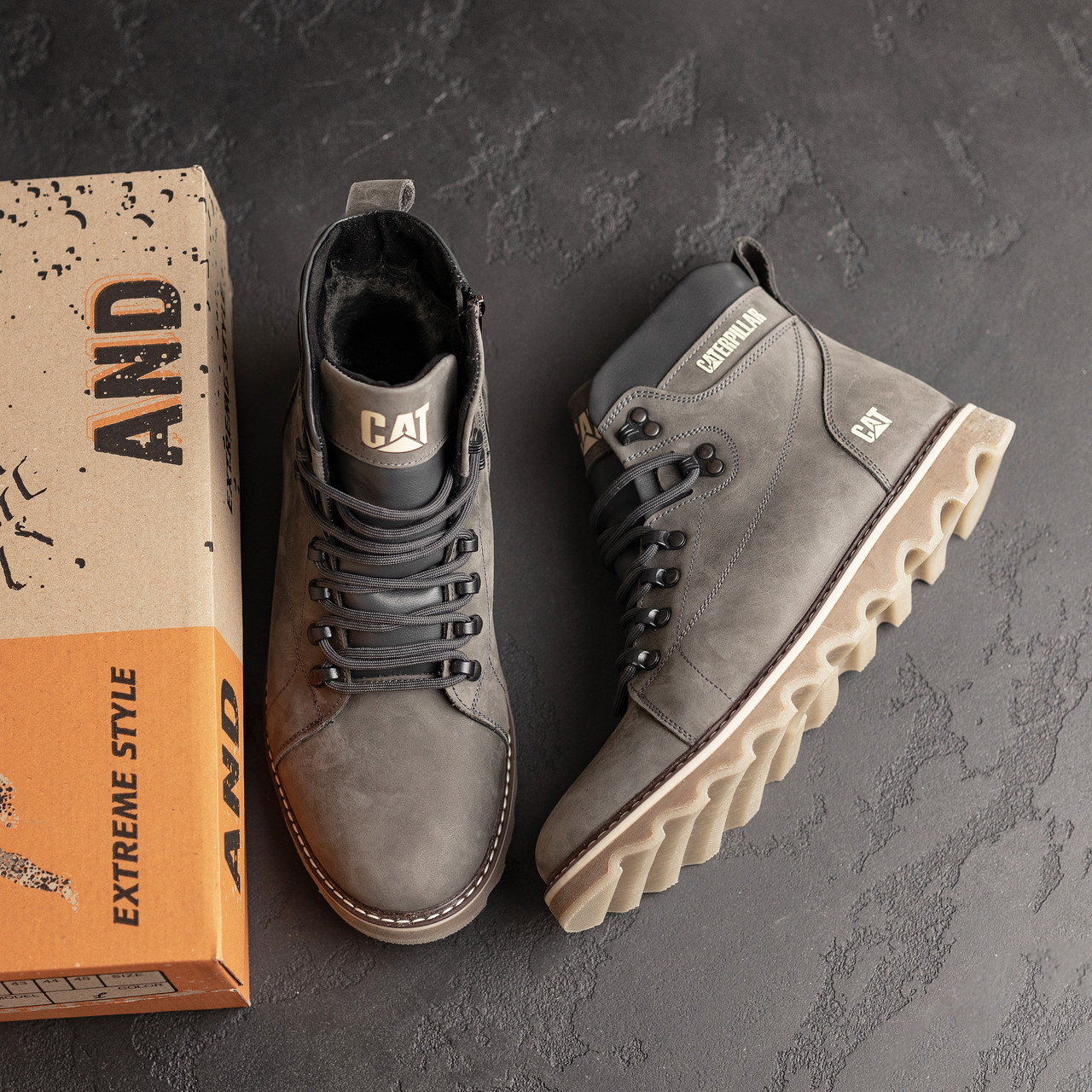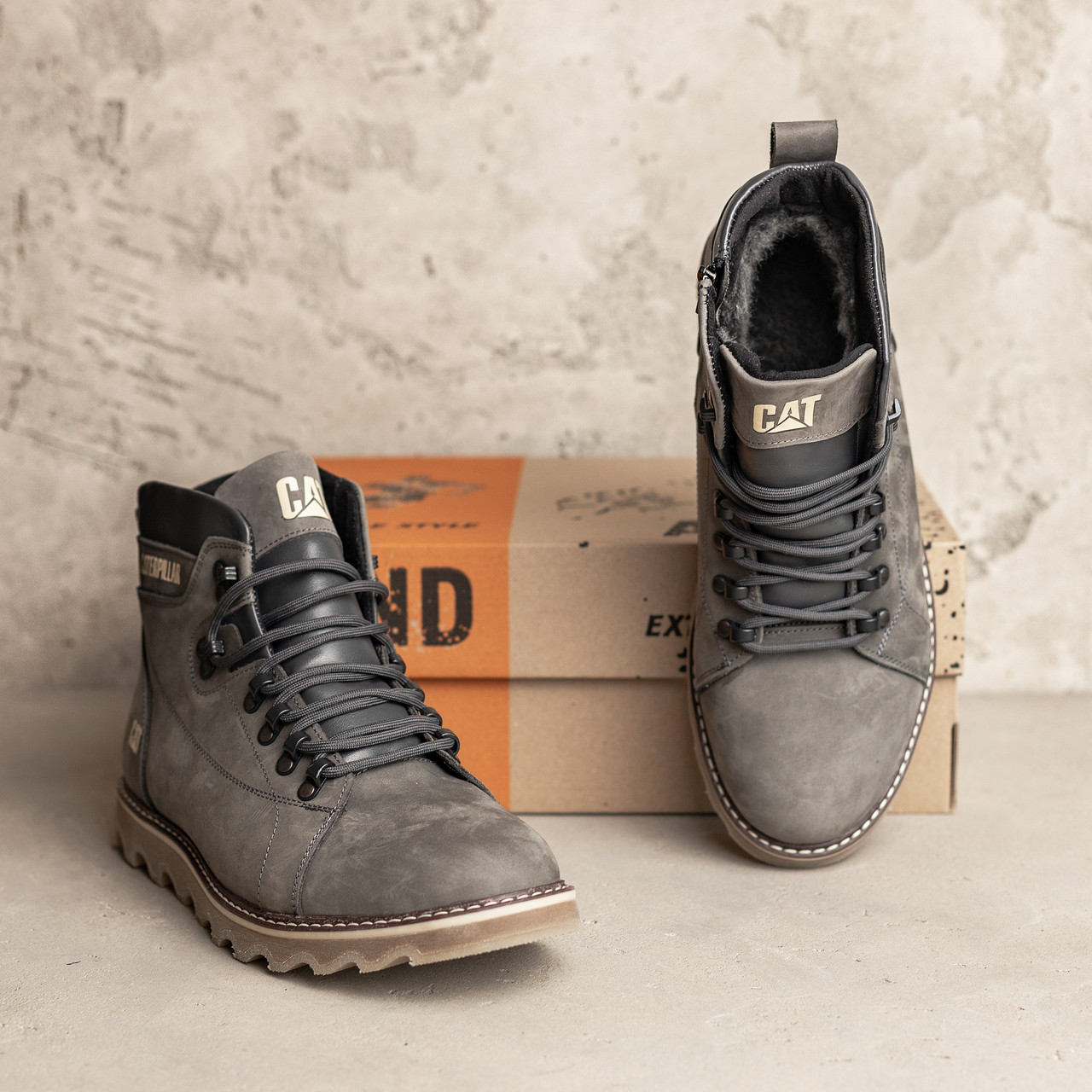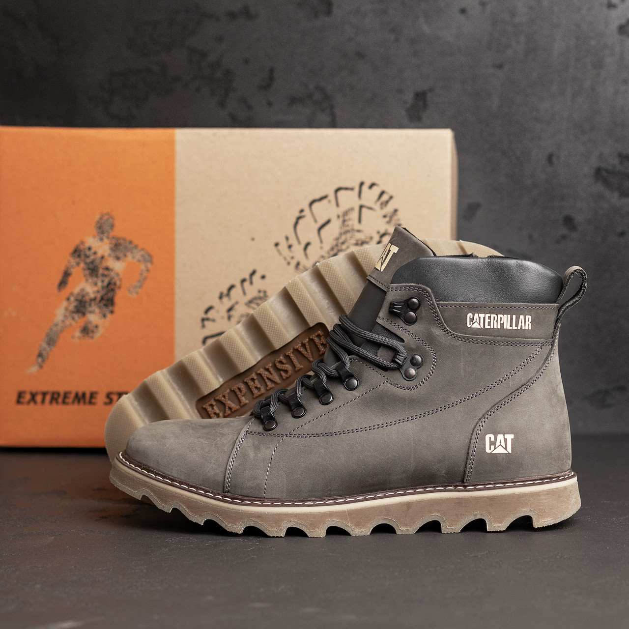 Чоловічі зимові шкіряні черевики CAT Expensive Grey (408 сір)