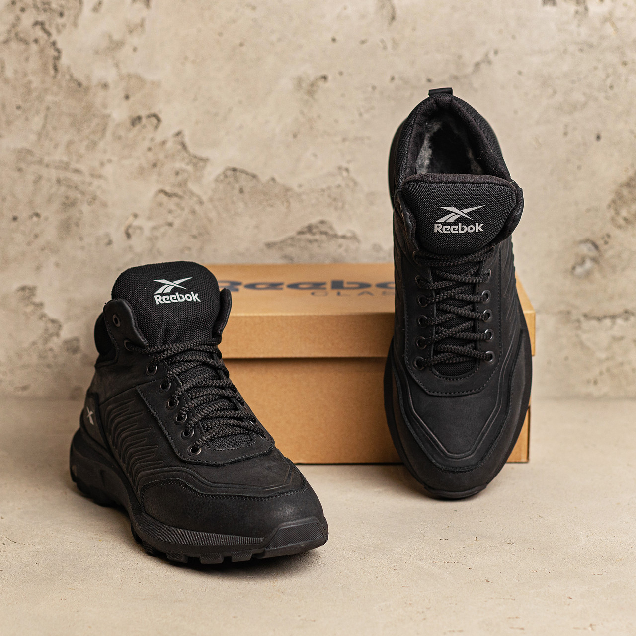 Верх черевиків зроблений повністю з натуральної шкіри, а для  взуття це важливо. Усередині черевик повністю набитий шерстю, а вона, як відомо, має вологопоглинальний і повітропроникний ефект. Також ботинки  Reebok Classic  Black мають підошву з поліуретану. Порівнюючи з іншими підошвами, ця чудово кидається й робить вашу ходьбу легшою.