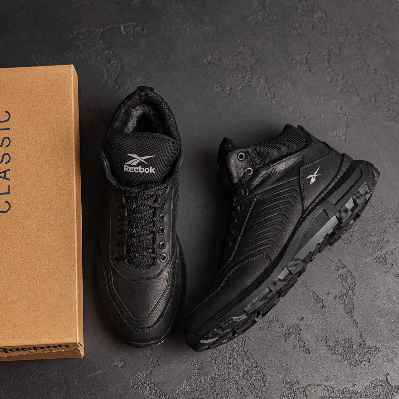 Чоловічі зимові шкіряні черевики Reebok Classic Black (R-07чорн бот)