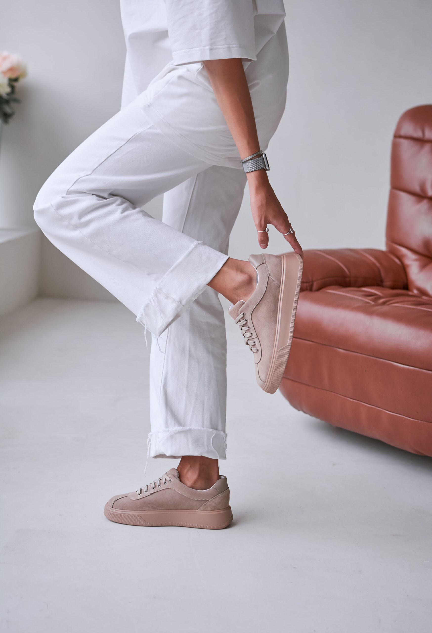 Кеди з натуральної замші ніжно-рожевого кольору (vm-006-12p)