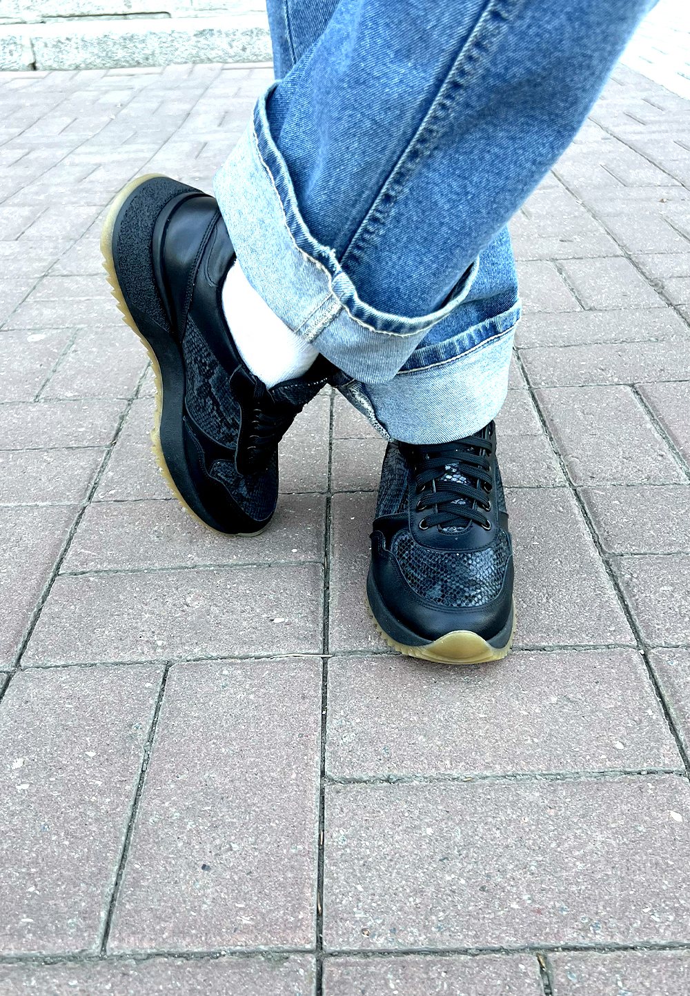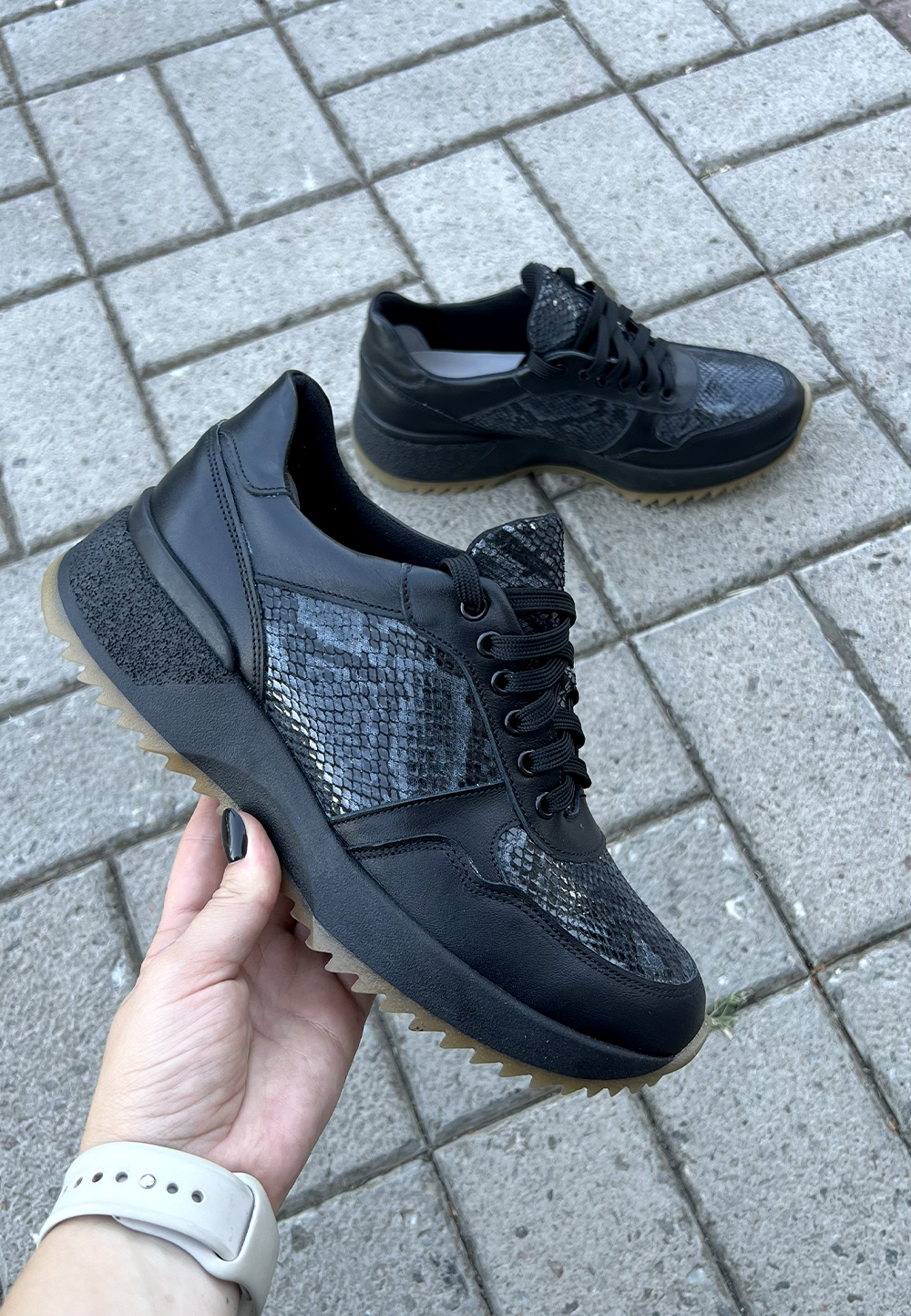 Кросівки жіночі шкіряні темні — принт змія (vm-176-38)