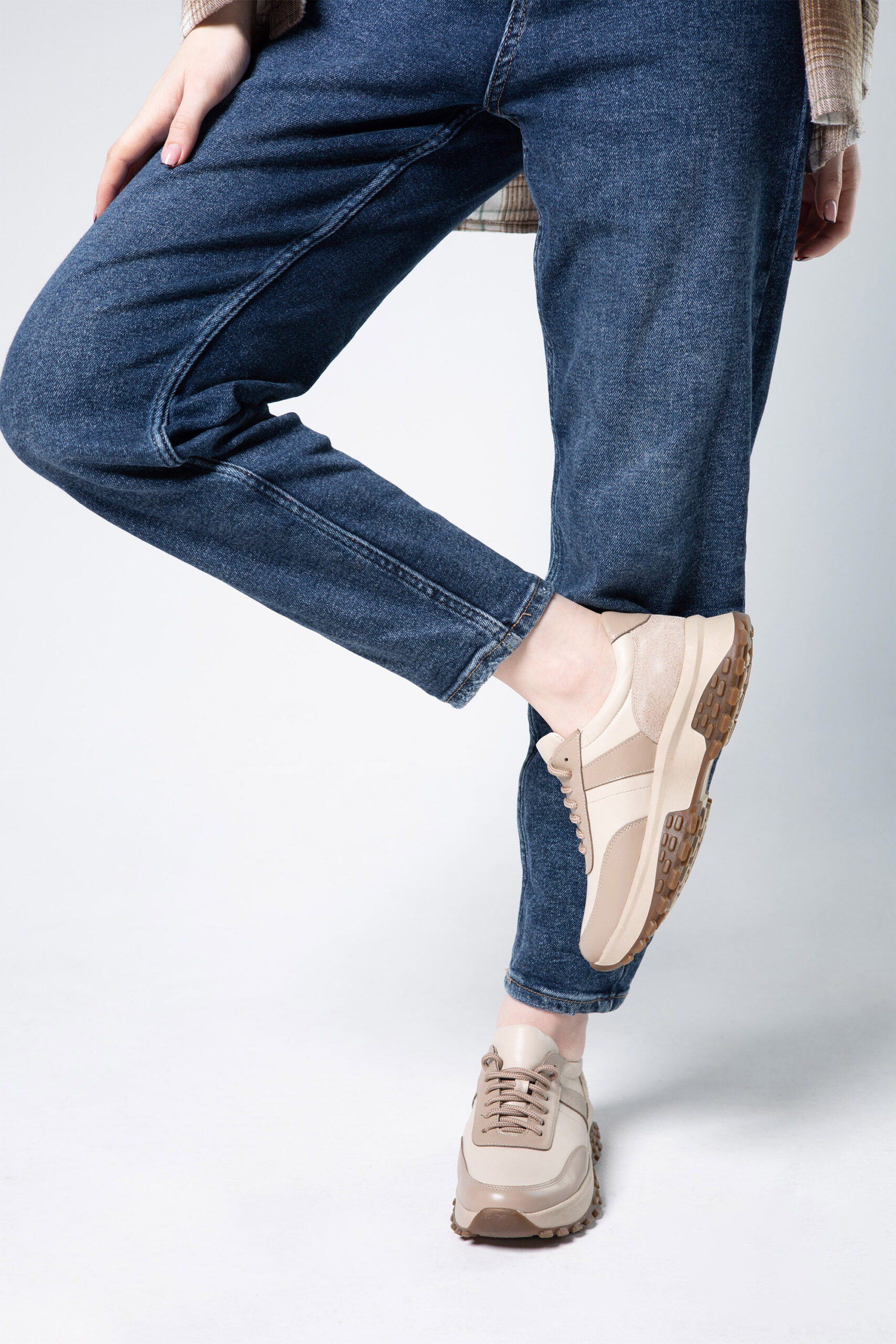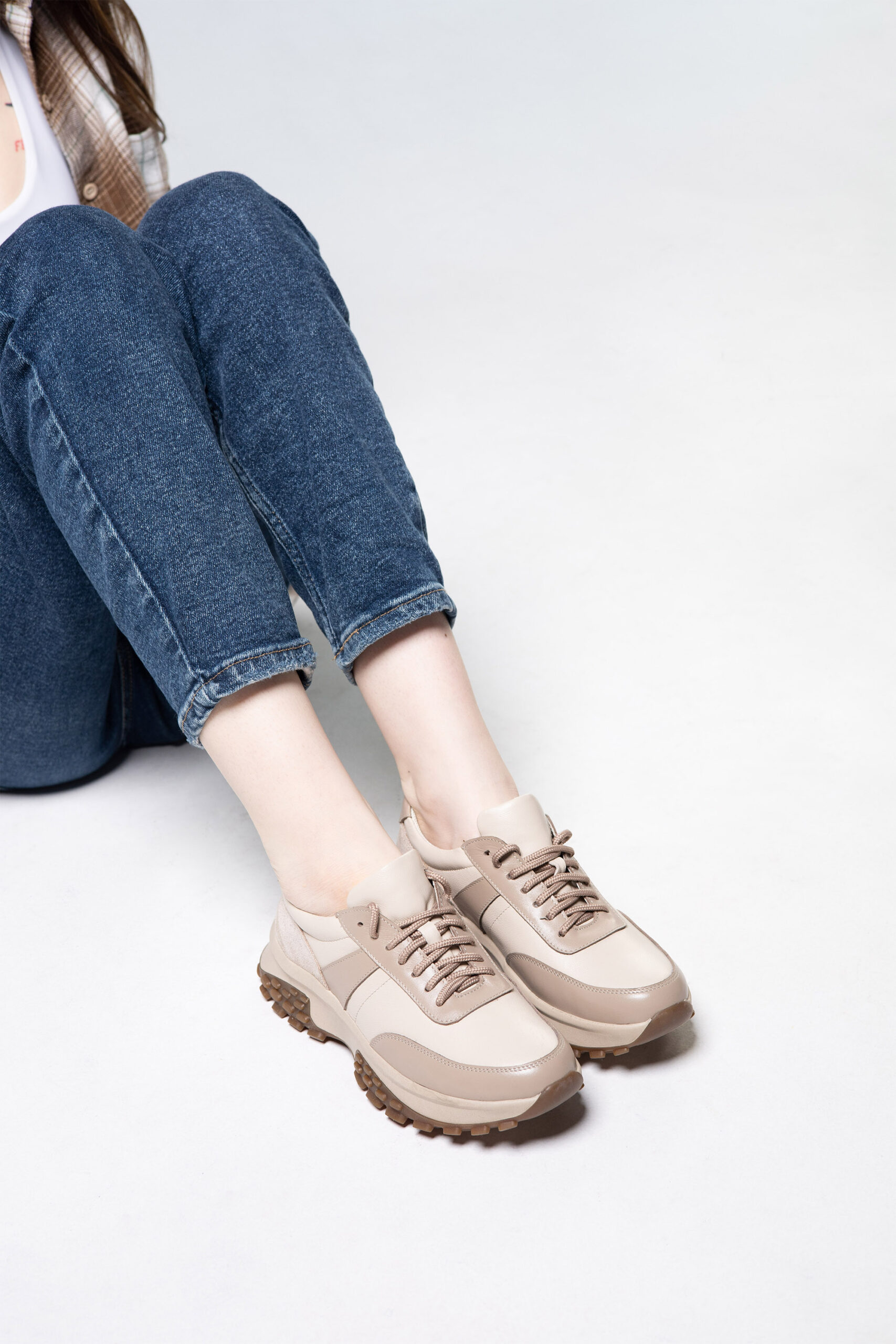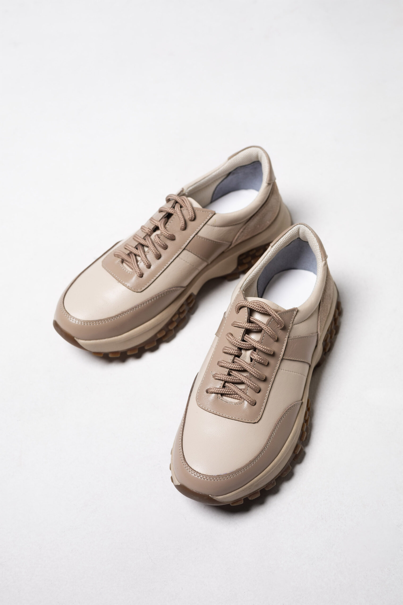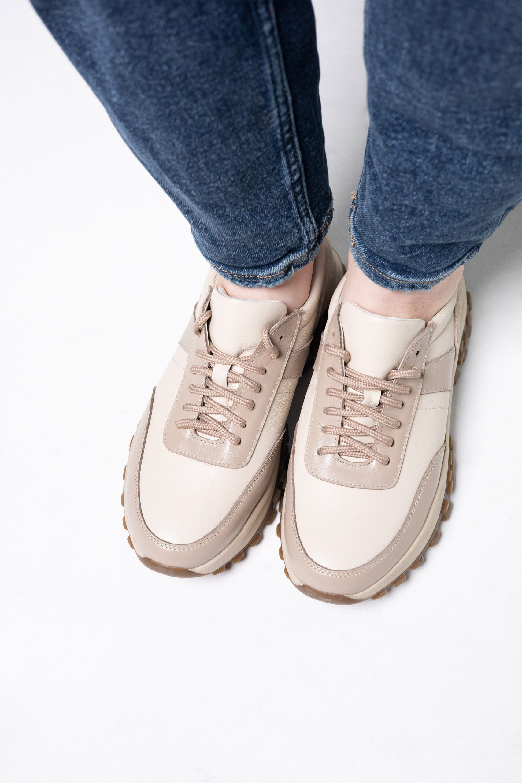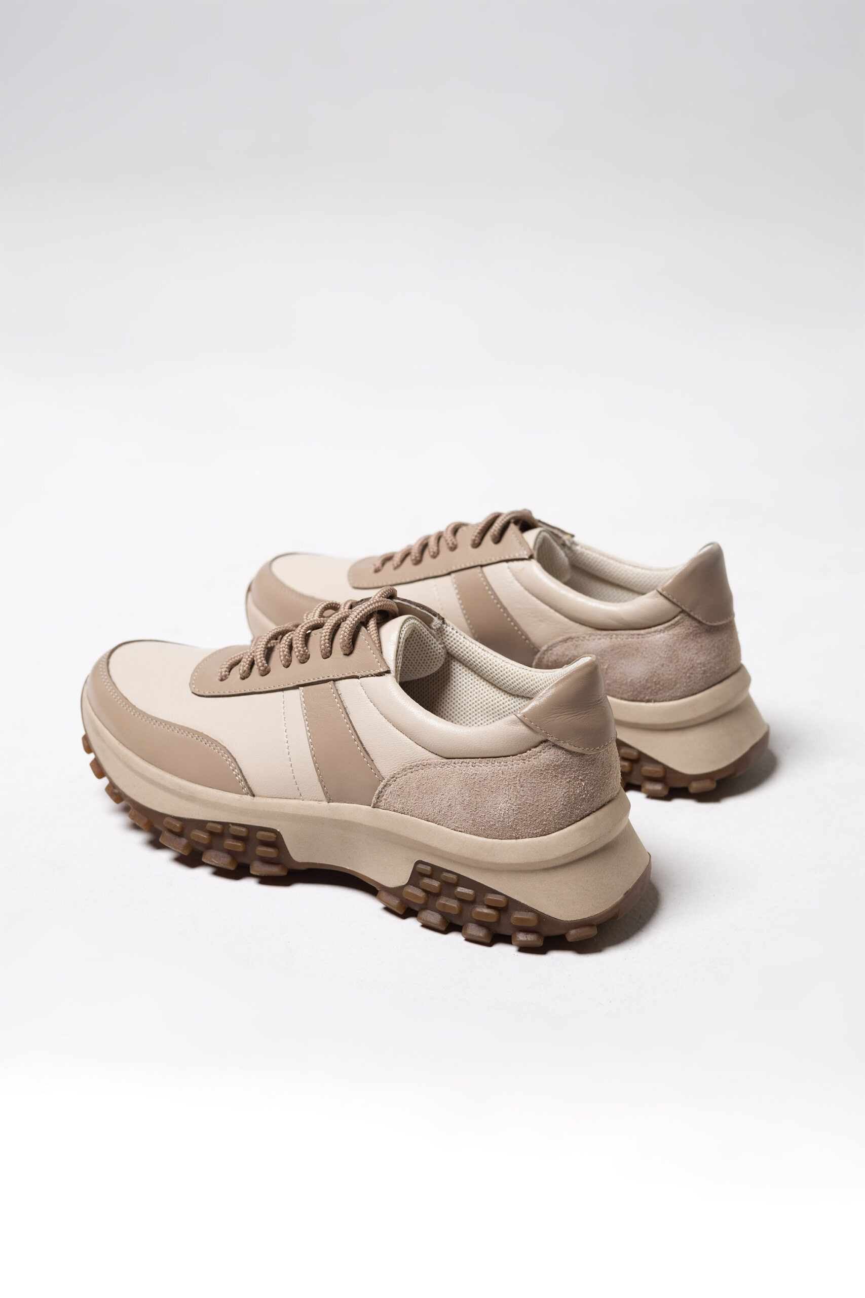 Кросівки жіночі в комбінації шкіри та замші кольору капучино (vm-176-351)