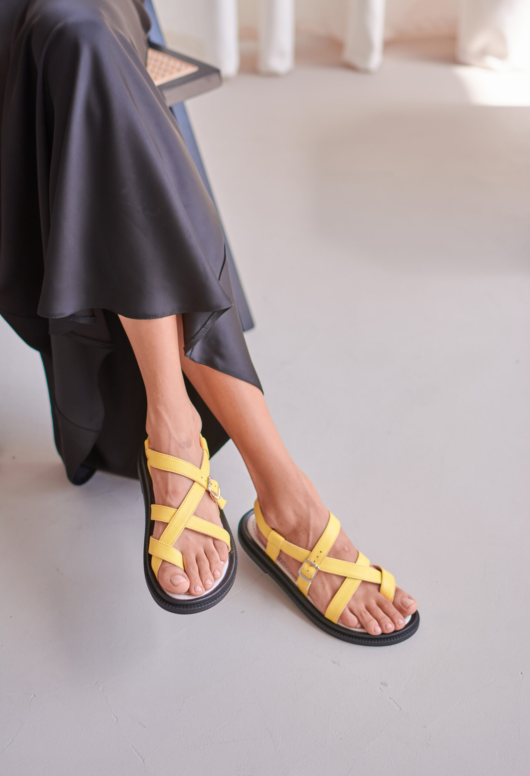 1 відгук для Жовті шкіряні босоніжки пряжки через палець на низькому ходу (vm-110-38y)
